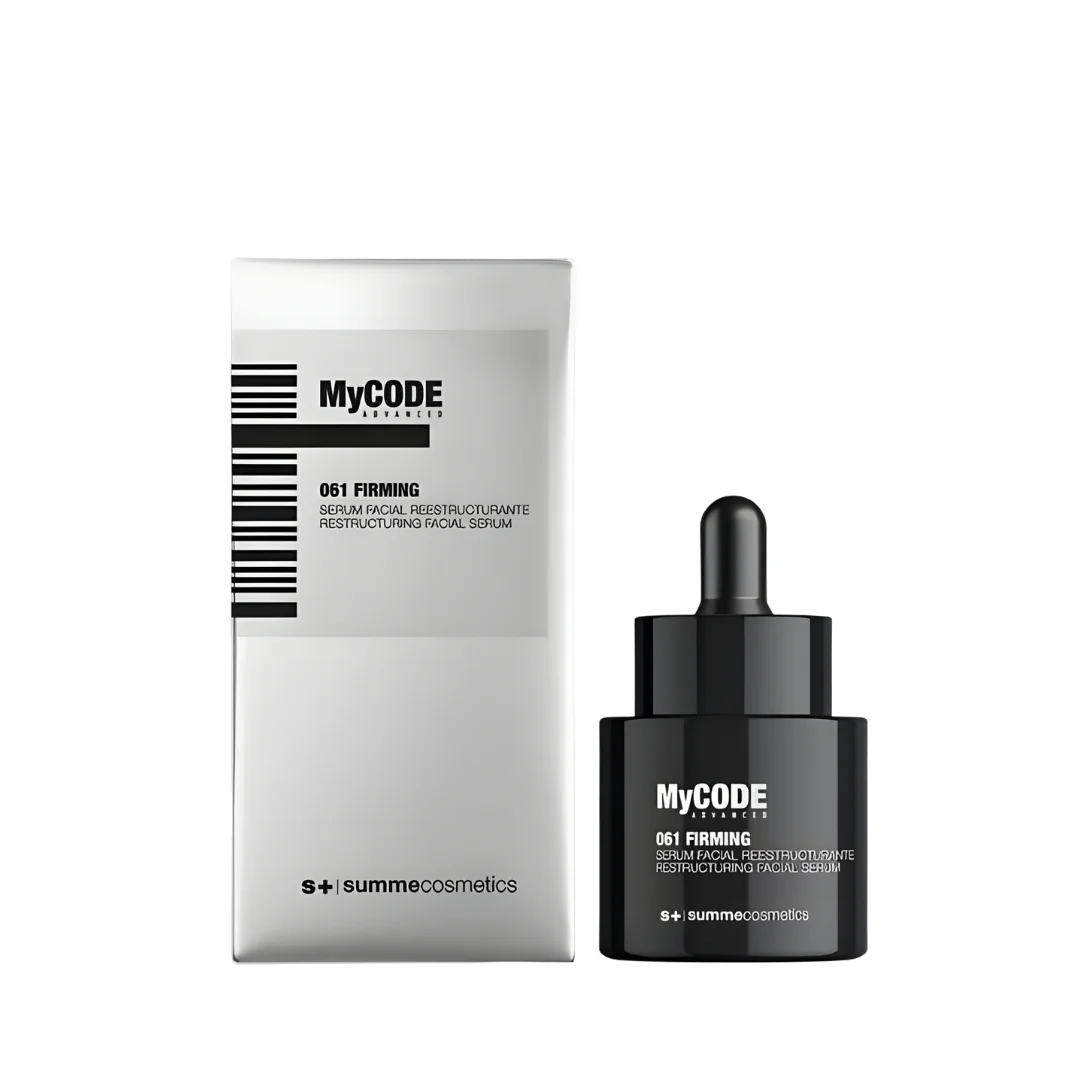 A Summe Cosmetics MyCODE Advanced 061 FIRMING szérum restrukturáló és feszesítő ápolás a volumenhiány, a bőrlazaság és az arc oválisának megereszkedése ellen. A formula a bőr támasztó rostjainak megerősítésével dolgozik: megelőzi a ráncok kialakulását, javítja a tónust és rugalmasságot, miközben fokozza a bőr természetes regenerációját.