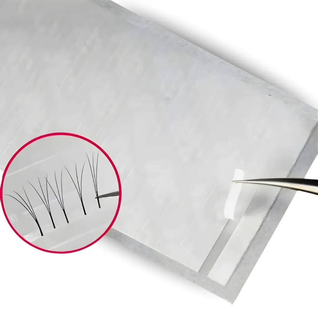 A volume ragasztócsík szempillaépítéshez használt segédeszköz, amely megkönnyíti a műszempillák rendszerezését és felvételét a volume technika során.