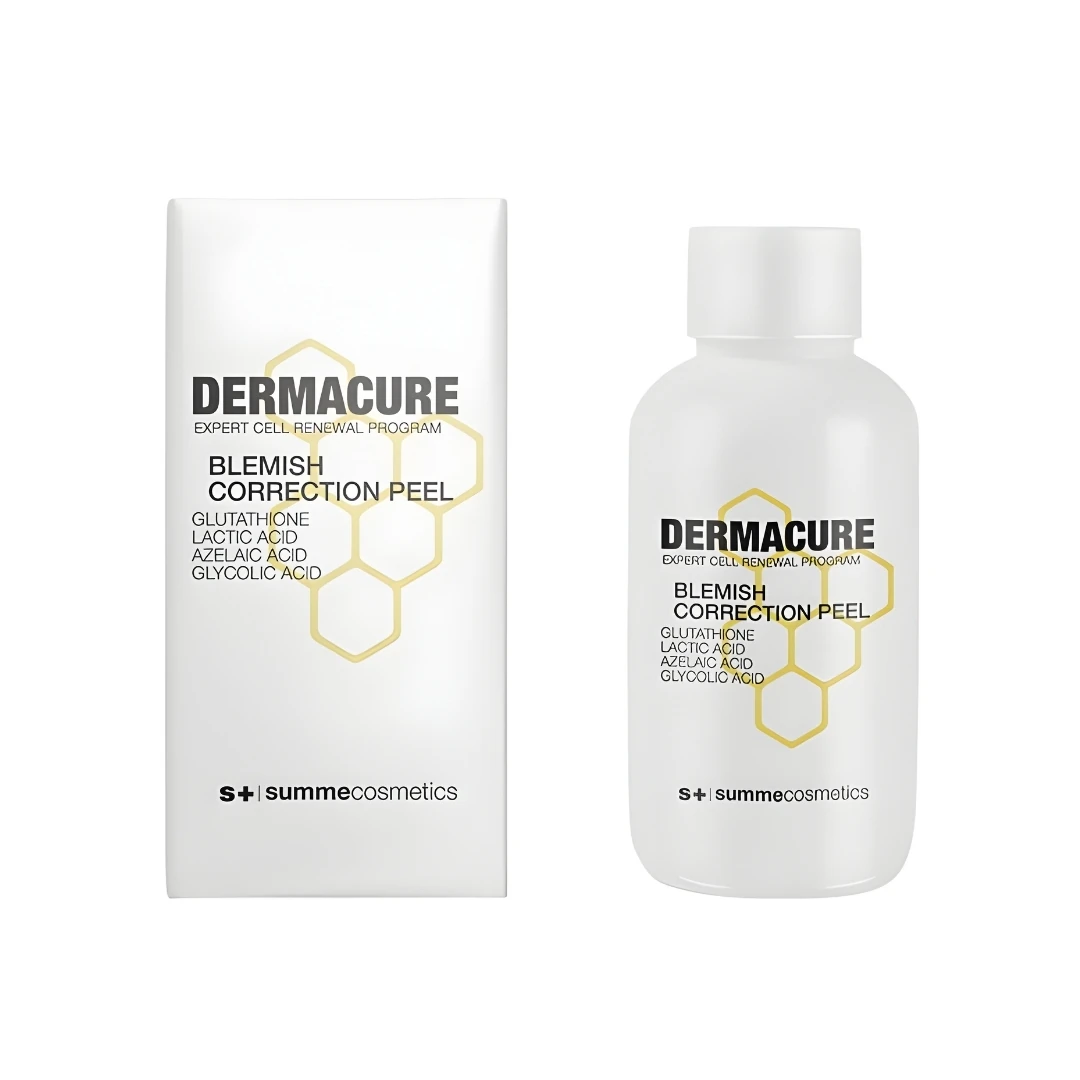 A Summe Cosmetics Blemish Correction Peel egy hatékony pigmentkorrekciós, depigmentáló kémiai hámlasztás, amely megszakítja a melanin-termelés láncolatát, ezáltal megelőzi az újabb foltok kialakulását és világosítja a meglévő elszíneződéseket.