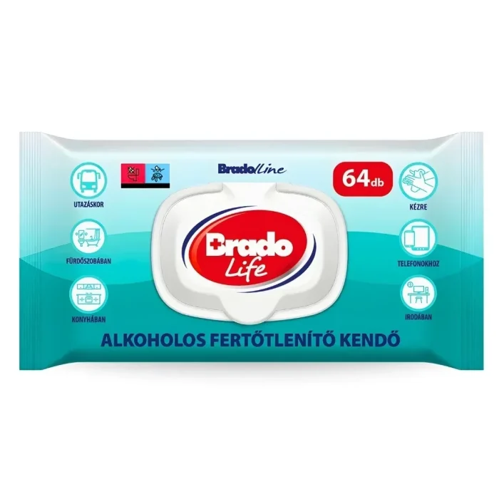 A Bradolife alkoholos fertőtlenítő kendő (64 db, kupakos kiszerelés) ideális választás a mindennapi higiéniához. Fertőtlenítőszerrel átitatott törlőkendő, amely egyszerű és gyors megoldást kínál kéz és különböző tárgyak felületének fertőtlenítésére.