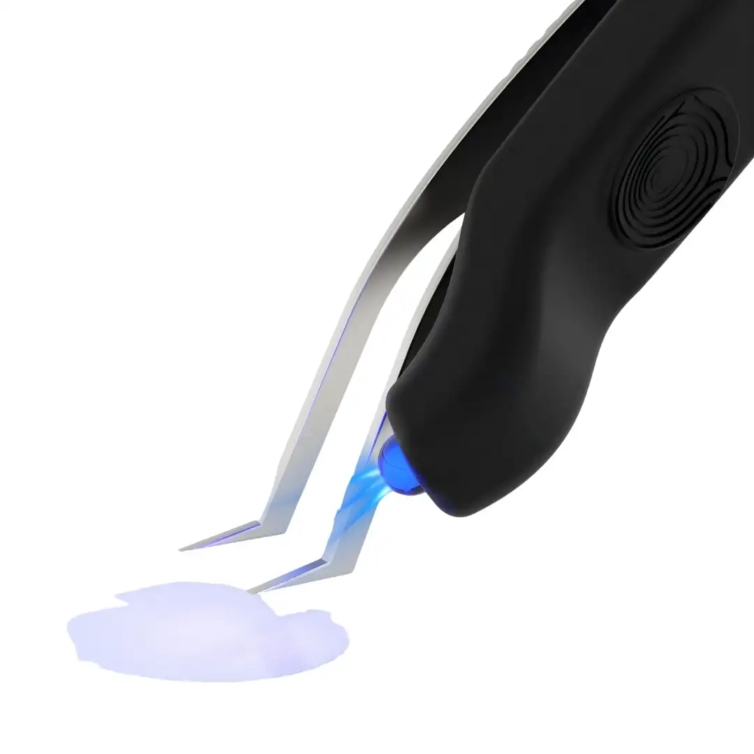 Szempillaépítéshez használható, csipeszre rögzíthető UV lámpa, UV-fényre kötő műszempillaragasztókhoz. A fény közvetlenül a ragasztási pontra irányítható, így a kötés gyorsan és kontrolláltan történik.