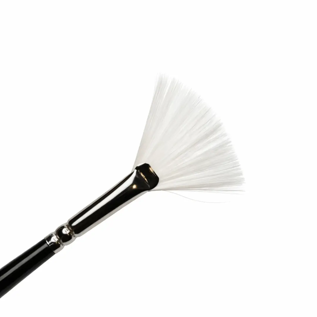 A kisméretű kozmetikai legyező ecset precíz és kontrollált anyagfelvitelre készült professzionális kozmetikai kezelésekhez. Kialakítása lehetővé teszi a hatóanyagok vékony, egyenletes rétegben történő felvitelét, különösen érzékeny vagy nehezen hozzáférhető területeken. A puha, fehér szintetikus sörték gyengéden érintik a bőrt, nem irritálnak.