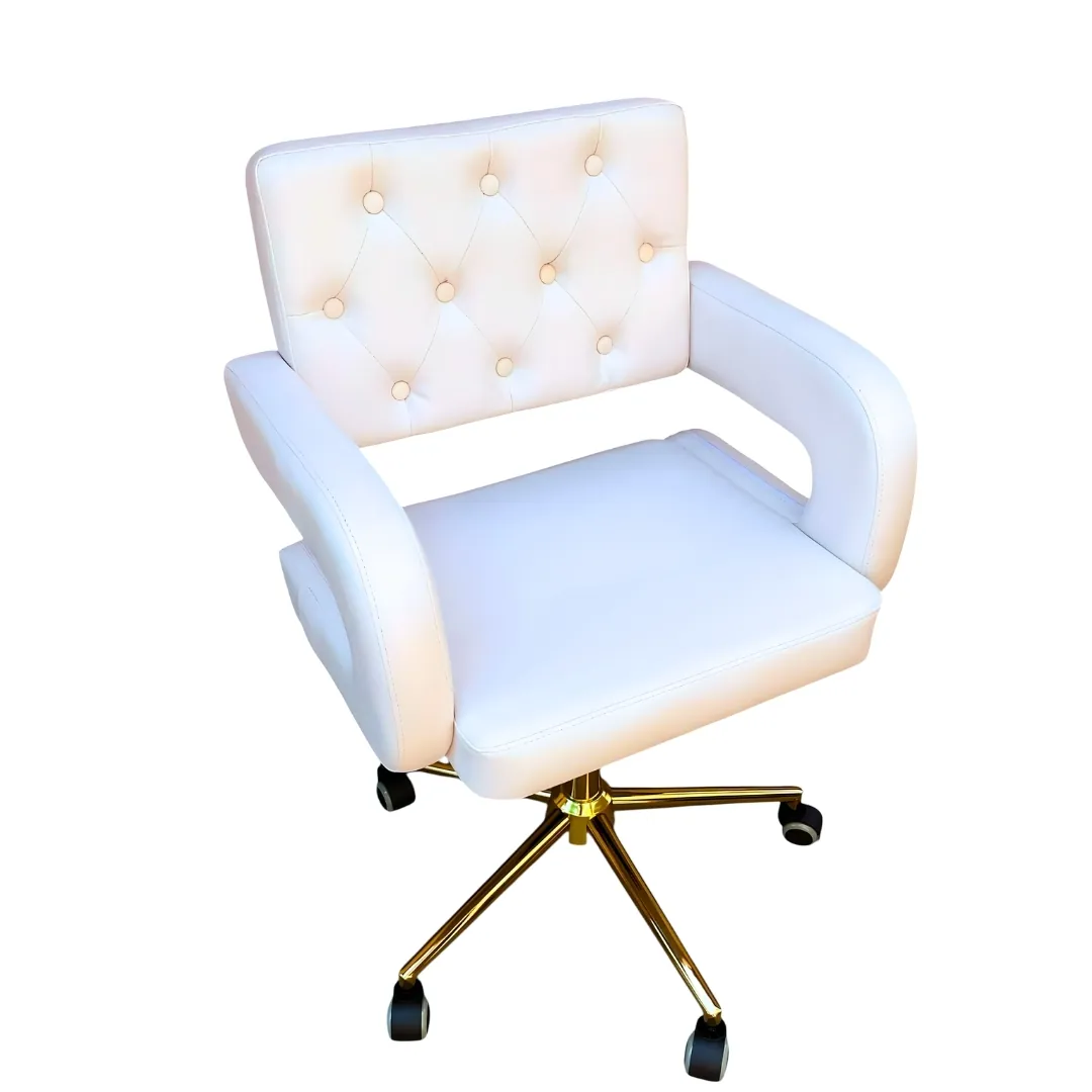 A Marvella White egy háttámlával és karfával ellátott, gurulós kozmetikai szék, amely stabil és kényelmes ülőpozíciót biztosít professzionális felhasználás során. Fehér ülőfelülete és háttámlája jól illeszkedik világos, letisztult szalonbelsőkhöz, az aranyszínű fém talp és karfák pedig tartós, stabil alátámasztást adnak.