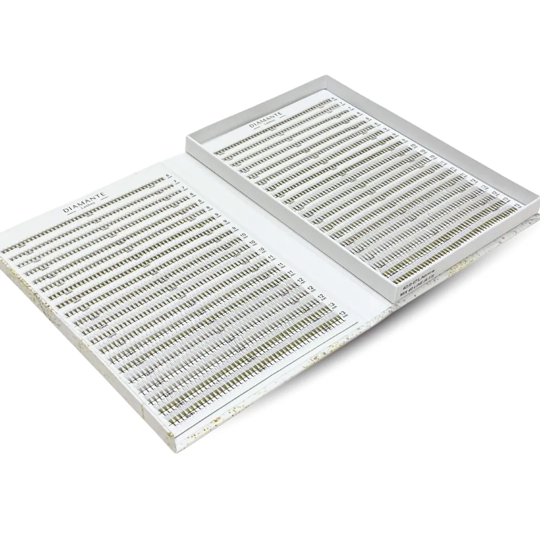 A Diamante Lashes Perfect Book adott volumenű promade fanokat tartalmazó professzionális mix tálca. Egy tálca egy volumenben és egy fan nyitottságban érhető el, több méret kombinációjával.