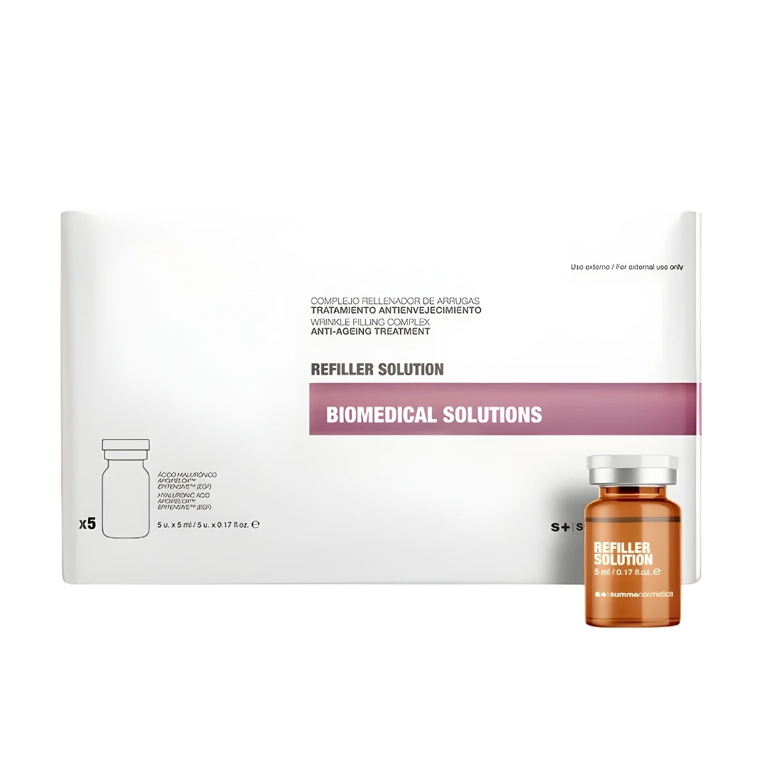 A Summe Cosmetics Refiller Solutions egy professzionális, nagy hatóanyag-tartalmú koncentrátum, amely a mély ráncok és mimikai vonalak célzott kezelésére készült.